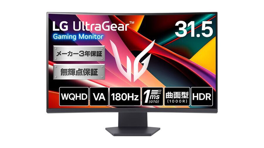 LG UltraGear 32GS60QC-Bは、WQHD(2560×1440ドット)の解像度を採用する31.5型湾曲ゲーミングディスプレー。1000RのVAパネルをはじめ、180Hzリフレッシュレートや応答速度1ms、HDRなどが特徴となっている。