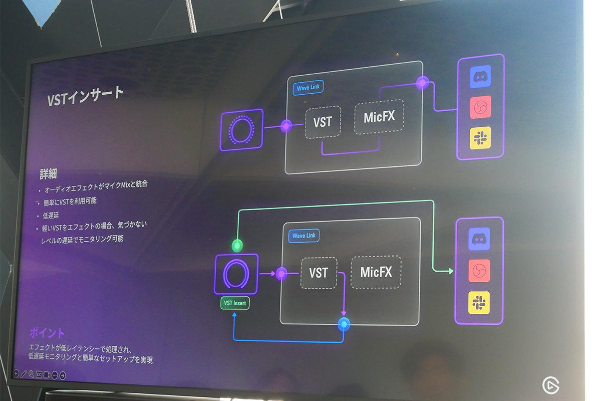 VSTインサートは、設定でマイクを選択すれば、設定したエフェクトがそのまま使えるという機能だ。これまでは、設定したエフェクトは仮想オーディオに選択され、それを使いたいソフトウェアごとに選ぶ必要があった。
