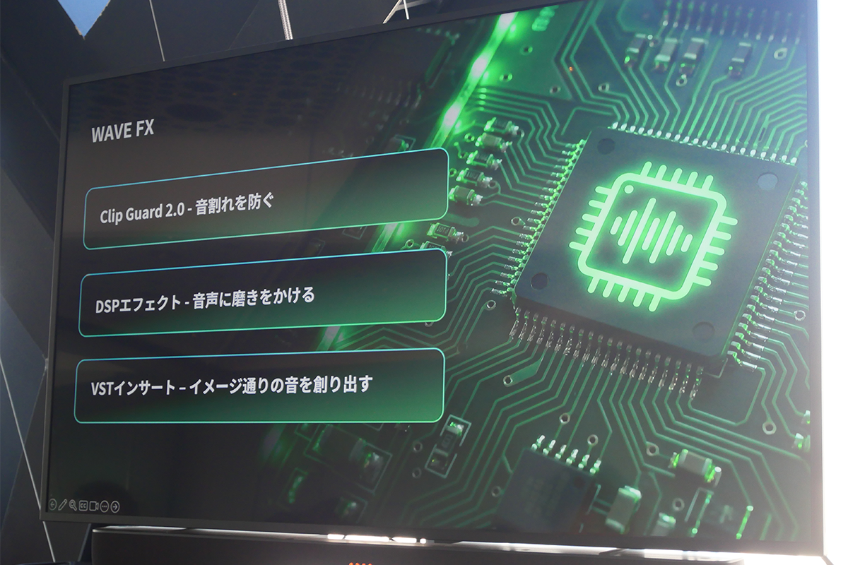 これら3つの機能がWAVE NEXTのハードウェアに標準搭載されていることで、難しい設定をすることなく簡単に配信やコンテンツでしっかり使える音質を実現できるとのことだ。