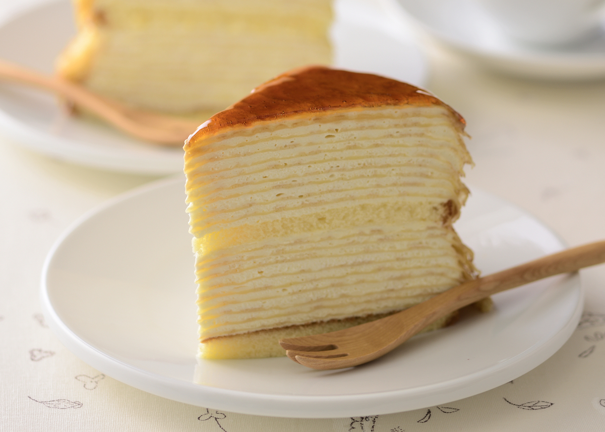 クレープとクリームが調和した豊かな味わいが特徴。さらに、ミルクレープの醍醐味ともいえるフォークを入れたときの“プツプツ”と切れていく感触を、いつも以上に楽しめるのもポイントだそう。