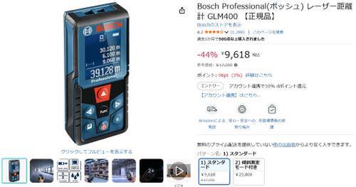 Boschのレーザー距離計「GLM400」がAmazonで割引対象。参考価格17,050円のところ、44%オフの9,618円で販売中。