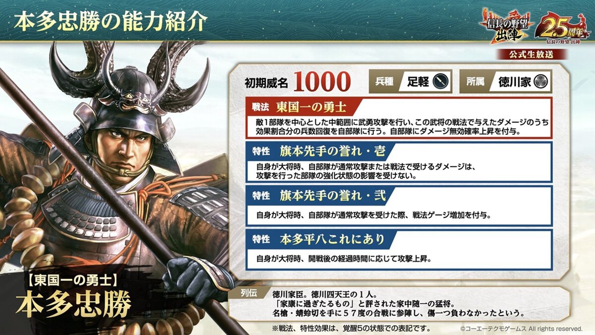 ※詳細な能力はゲーム内の武将詳細をご確認ください。