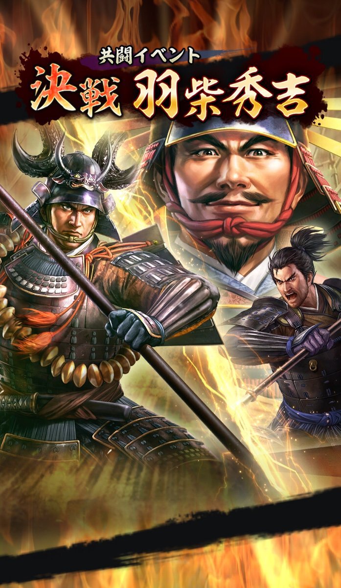 共闘イベントとは、全国のプレイヤーとともに、強力な武将と戦うイベント。今回は敵総大将として、羽柴秀吉が立ちふさがる。