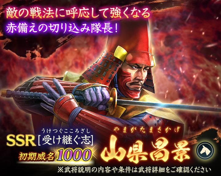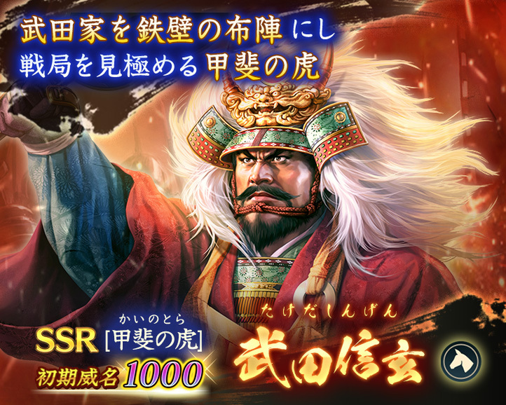 ■初期威名1000のSSR【甲斐の虎】武田信玄、SSR【受け継ぐ志】山県昌景が復刻登場! 「復刻将星特別登用・武田 2.5」開催