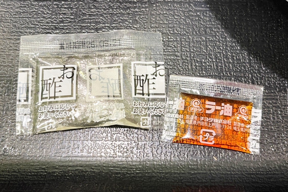 ここで付属のお酢とラー油を加えてみました。風味を足すつもりだったのですが、お酢の酸味で全体がぐっと軽やかになり、とてもさっぱりした味わいになりました。