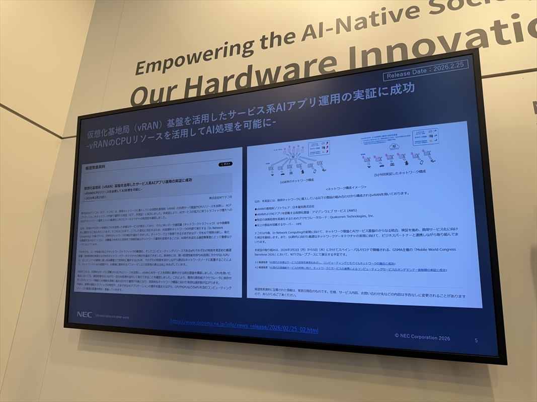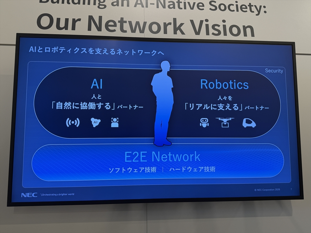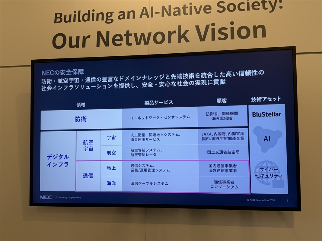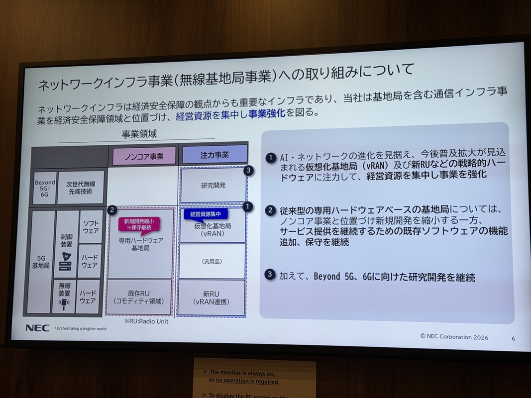 そのような状況の中、NECはMWC26に出展。NECブースおよび担当者への取材によると、これは単純な事業撤退ではなく、成長領域への経営資源の集中を目的とした「戦略転換」であるという事実がわかった。