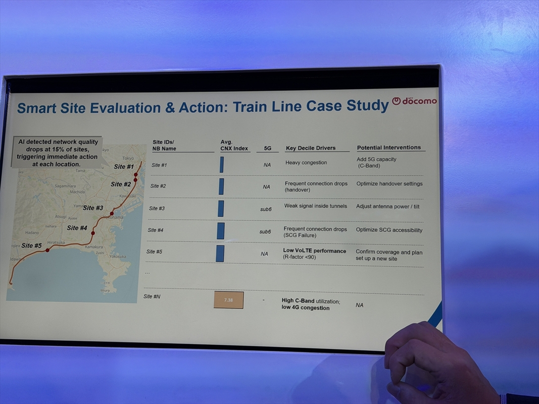 そこで、1日に約230億件にも上る巨大なデータをAIに分析させ、全国の基地局ごとにユーザーの「体感品質」を数値化することに成功した。このAIは昨年10月から現場で活用されており、数値が悪い場所から優先的に電波状況の改善を進めるのに役立っているとのこと。