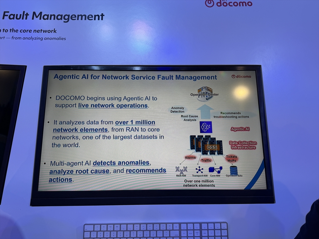 スペイン・バルセロナで開催されたMWC26。NTTドコモは、ネットワーク運用にAIを組み込む最新の取り組みを展示した。