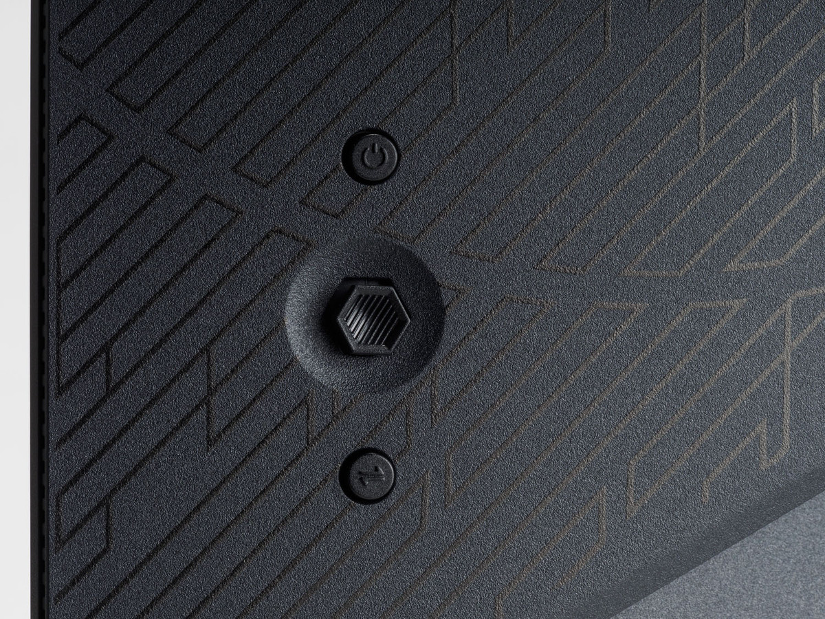 操作系は背面左下にあり、2つのボタンとスティックで構成されている。2つのボタンは上が電源、下がデュアルディスプレイモードの切り替えだ。スティックはOSDメニューの呼び出しから、以降の操作を行なえる。