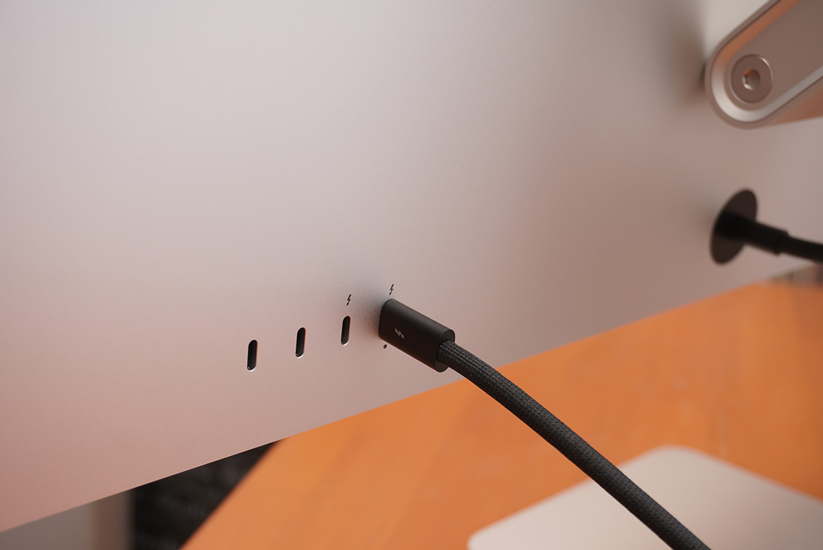 接続性の高さも大きな魅力です。背面にはThunderbolt 5ポートを備え、1本のケーブルで5K120映像出力と同時に最大140Wの給電に対応します。たとえば、外出時はMacBook Proで仕事をこなして、自宅やオフィスではStudio Display XDRに接続して大型ディスプレーで作業の続きをこなすといった使い方ができそうなので、もはやデスクトップのMacを別途用意しなくても充実した仕事環境が構築できそうです。