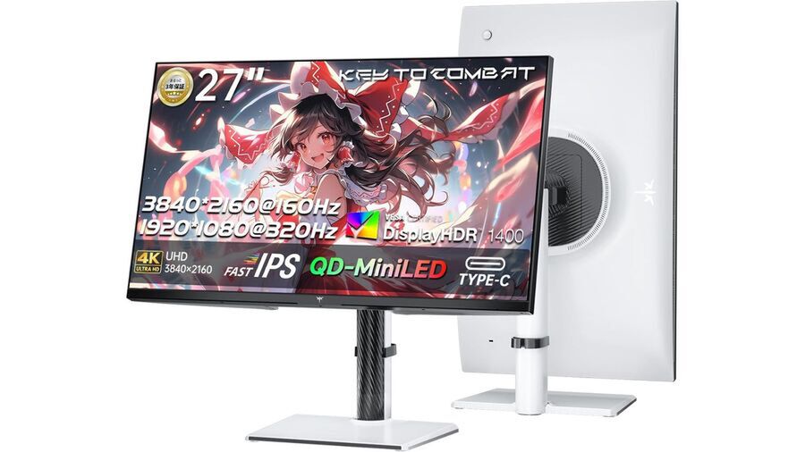 本製品は、4K/160Hz&フルHD/320Hzのデュアルモードを搭載するゲーミングディスプレー。映像美重視のゲームは4K、競技性の高いゲームはフルHDという風に解像度をスムーズに切り替えられる。またQD-Mini LEDおよびHDR1400も特徴で、明暗差の美を堪能できるという。そのほか、多機能スタンドやKVM機能も特徴となっている。
