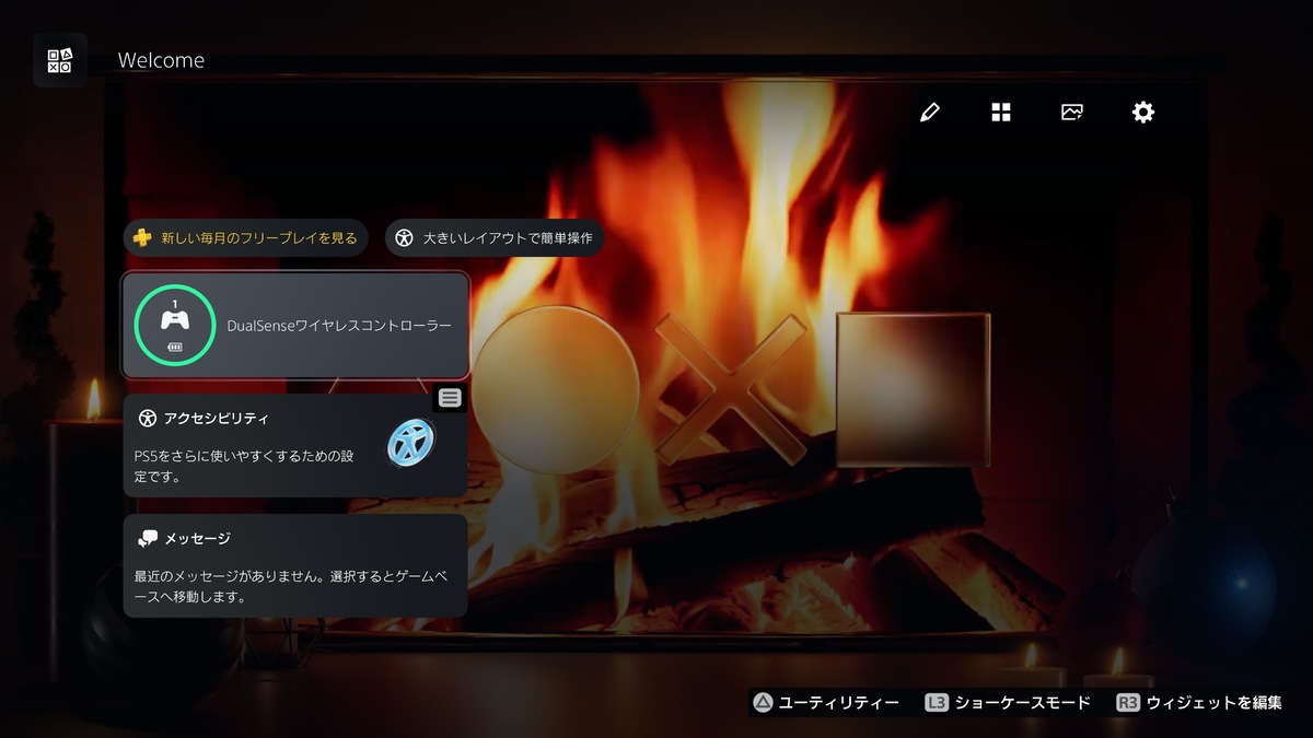 これは、PS5をしばらく操作しなかったときにWelcomeハブのウィジェットを非表示にし、背景を全画面表示する機能。L3(左スティック押し込み)で即座に切り替えできる。