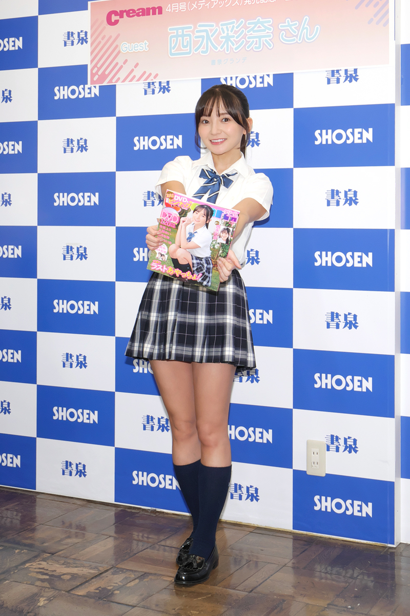 副編集長が誌面を飾るのはこれが最後! グラビア卒業を発表した西永彩奈(にしなが・あやな)さんが、制服美少女誌「Cream 2026年4月号」(発行元:メディアックス、定価:2500円)の発売記念イベントを3月7日、神保町の書泉グランデで開催した。