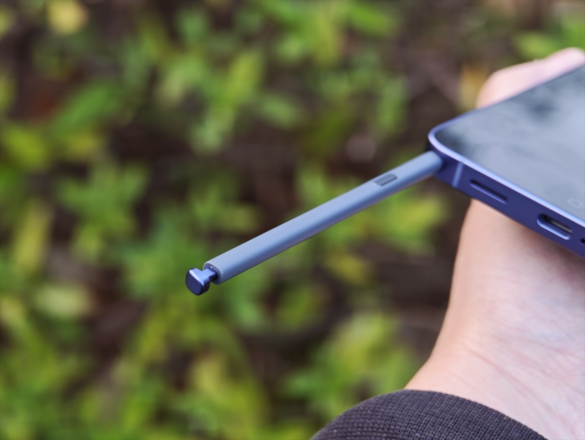 Galaxy S26 Ultraの最大のアイデンティティーとも言えるのが、本体に内蔵されている「Sペン」です。スマホからサッとペンを抜き出すだけで、紙の手帳と同じようにスラスラと手書きのメモが取れます。