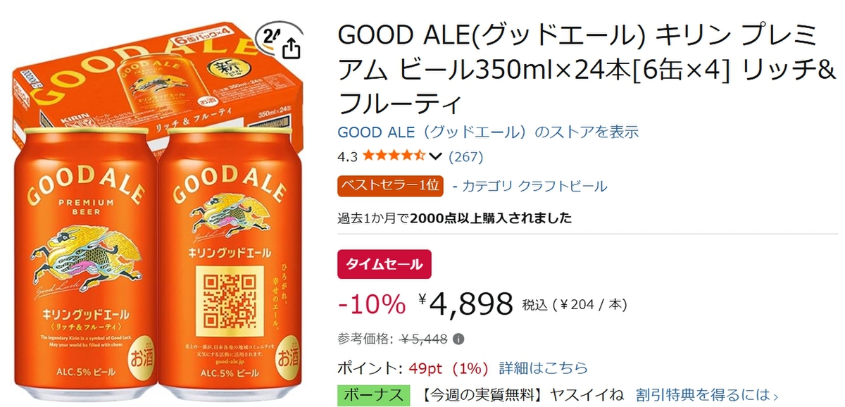 ビール好き必見、1本204円! フルーティなキリン「GOOD ALE」がAmazonタイムセールに登場