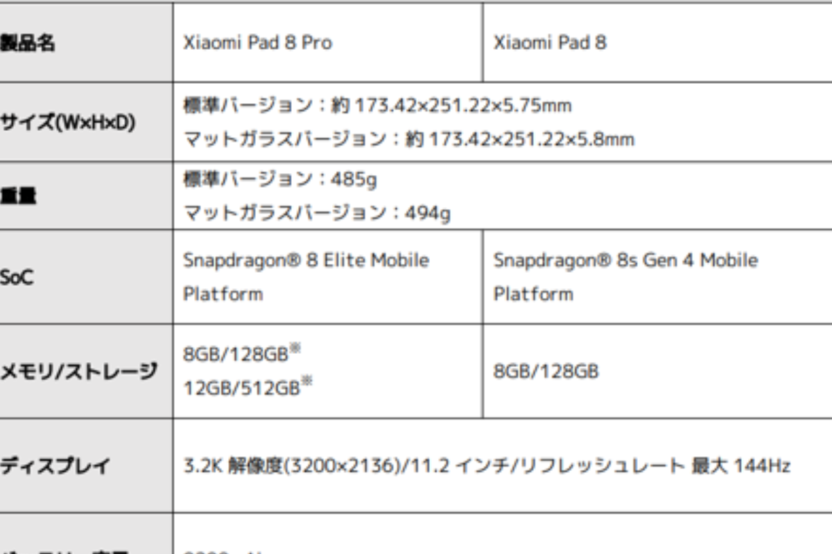 Xiaomi「Xiaomi Pad 8」