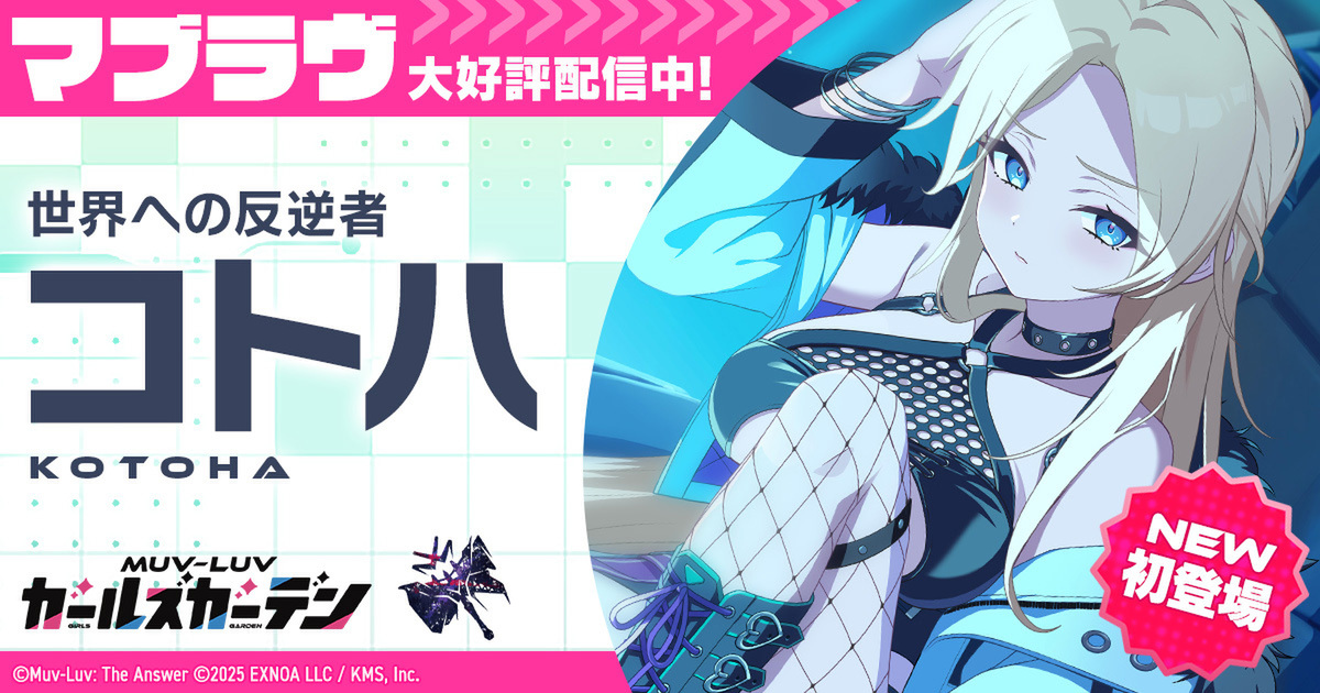 合同会社EXNOAとKMSは3月18日、PC(ブラウザ/DMM GAME PLAYER)/Android(DMM GAMES STORE)/iOS(DMM GAMES STORE)向けマブラヴ最新作『マブラヴ ガールズガーデン』(以下、マブガル)について、新章解放イベント「刻まれしアナムネーシス」後編を3月17日から開始し、新SSR「コトハ」が登場したと発表。