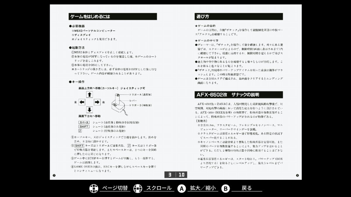 『EGGコンソール ザナックEX MSX2』は、アプリケーション標準で用意している、ゲーム内の各シーンやラスボス戦、エンディングをすぐに楽しめる「シーンセレクト」モードに対応。また、当時の貴重なマニュアルやパッケージジャケットをいつでも閲覧できる「ギャラリー」モードも搭載している。