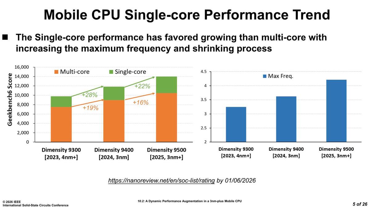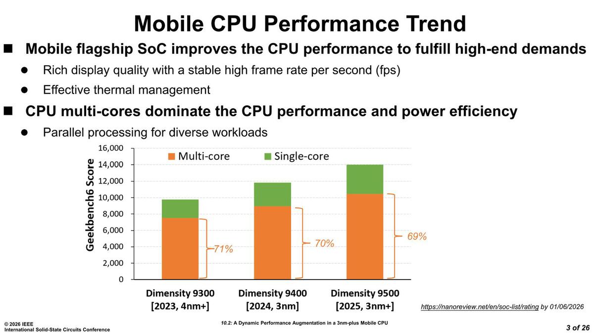 ISSCCのSession 10はデジタル回路をどう実装するかを論じる"Digital Processing and Circuit Techniques"だ。ここでMediaTekはDimensity 9500の実装を発表した。