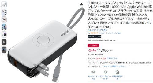 【Amazonタイムセール】Philips コンセント一体型モバイルバッテリー「DLP4350Q」をチェック!
