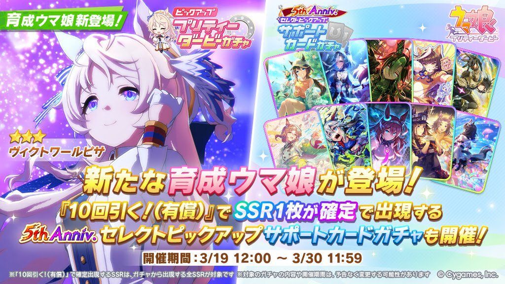 Cygamesは3月19日、iOS/Android/PC(Steam)向け育成シミュレーション『ウマ娘 プリティーダービー』について、新たな育成ウマ娘が登場したと発表。