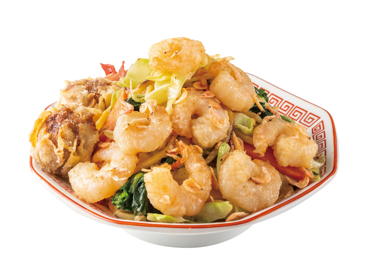 海老の食感を前面に押し出した焼きそばとチャーハンが登場。プリッとした弾力とザクザクとした衣の対比が楽しめそう! 海老の量を増やせる仕様もうれしいですね。