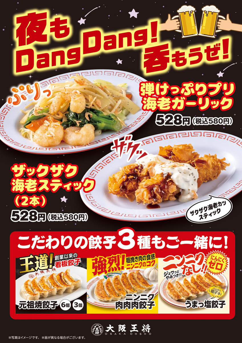 大阪王将は3月25日より、春の期間限定フェア「春はDangDang!海老ろうぜ!」を開催し、海老を主役にした期間限定メニュー2品を販売します。