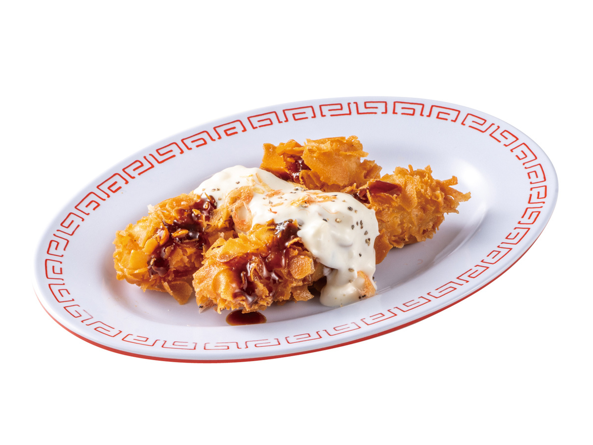 紅海老を散らし、タルタルソースをかけた仕立てで、海老スティックは2本・3本・5本から選択できます。