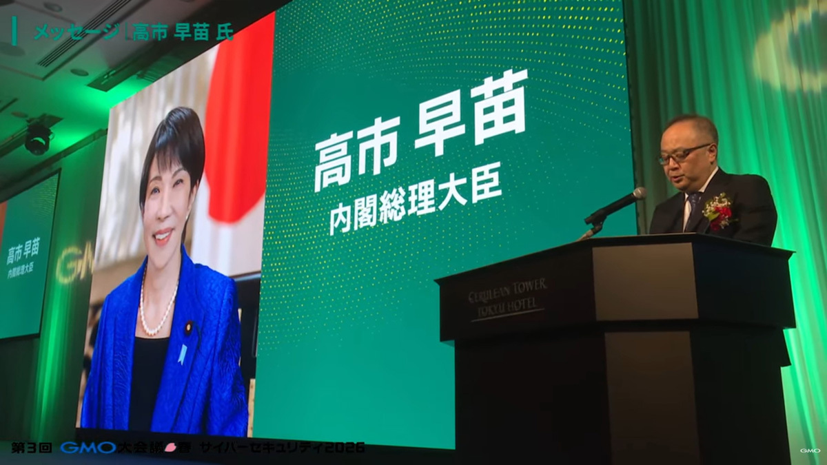 今回は、GMOインターネットグループ代表の熊谷正寿氏のオープニングメッセージ、高市早苗内閣総理大臣および小泉進次郎防衛大臣からのメッセージ、そして初代内閣サイバー官である飯田陽一氏による講演の模様をレポートする。