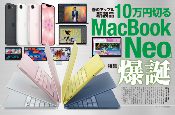 特集1はApple新製品。10万円を切る低価格、しかし驚きの実用性を備えた「MacBook Neo」が爆誕だ。特集2はインフレ時代、お財布にやさしい低価格スマホ。ねらい目は3万円台だ。