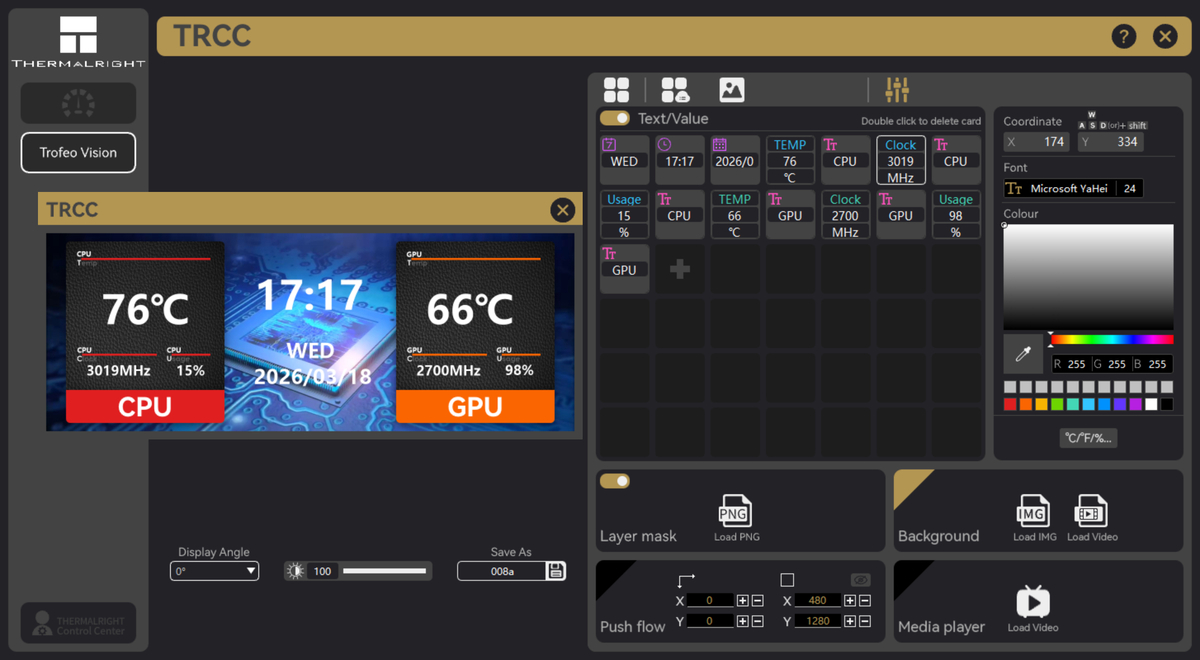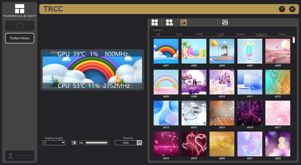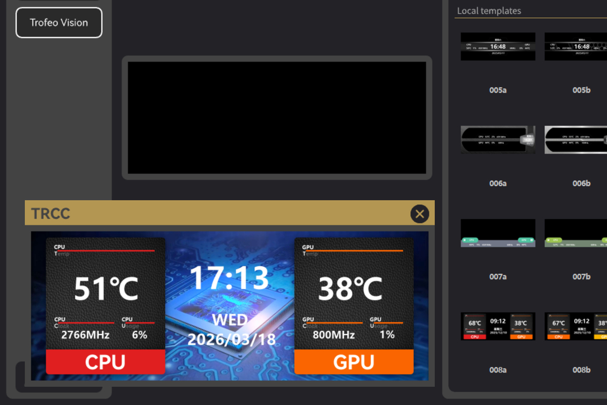 PCに接続し、「TRCC」を導入すれば、あとは好みのデザインにカスタマイズするだけだ。表示言語は日本語に対応していないが、静止画、GIFアニメなどの背景やステータスの表示デザインのプリセットは豊富なので、プリセットから選ぶだけでも、十分楽しめる。