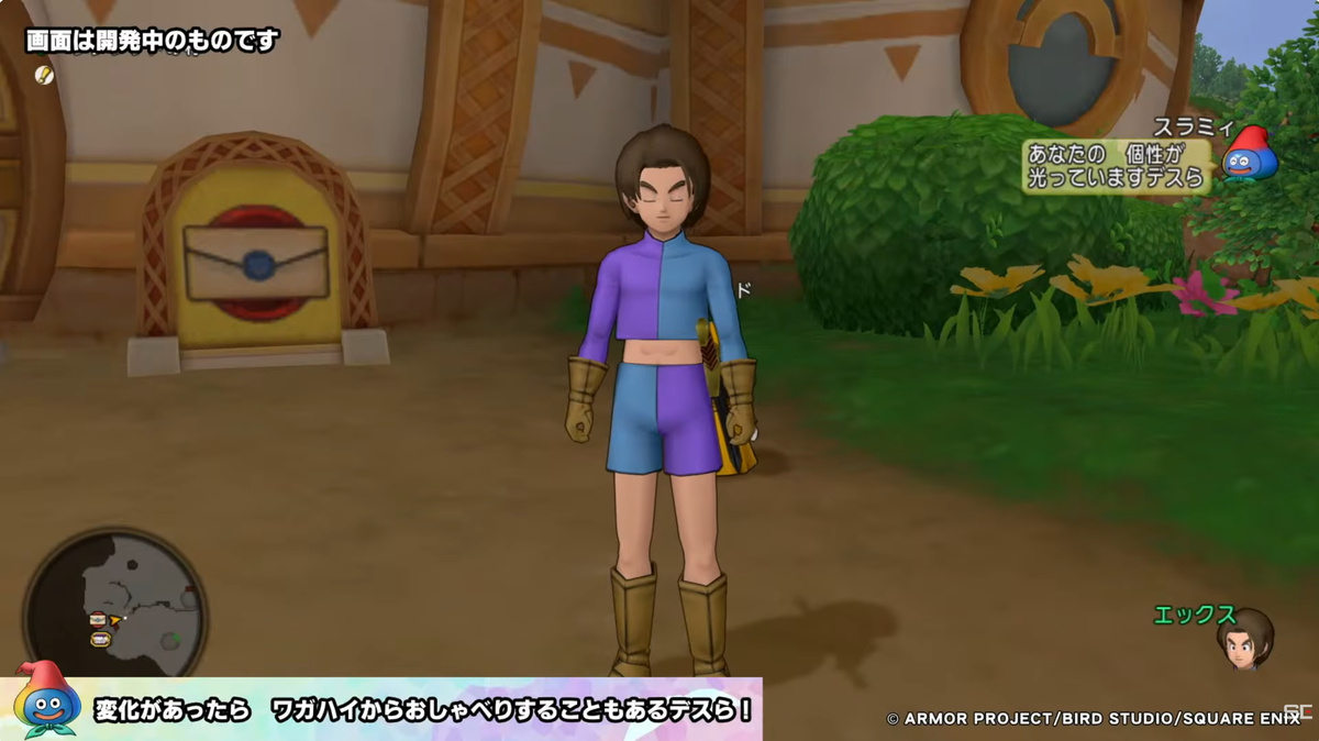 公開された映像では、ボイス付きでエックス君と話すスラミィの姿が。このボイスはまだ仮のもので、正式実装の際には声優さんと契約して「それっぽく」調整する予定とのこと。会話内容はほかの人には見られない(聞こえない)。