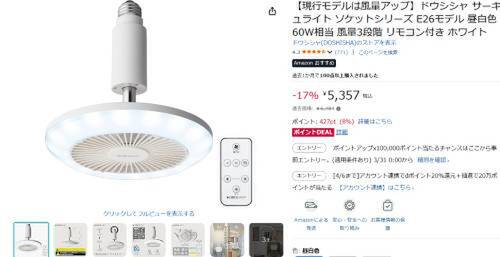 【Amazonで17%オフ】ドウシシャ 照明一体型サーキュレーター「サーキュライト ソケットシリーズ E26モデル 昼白色」をチェック!