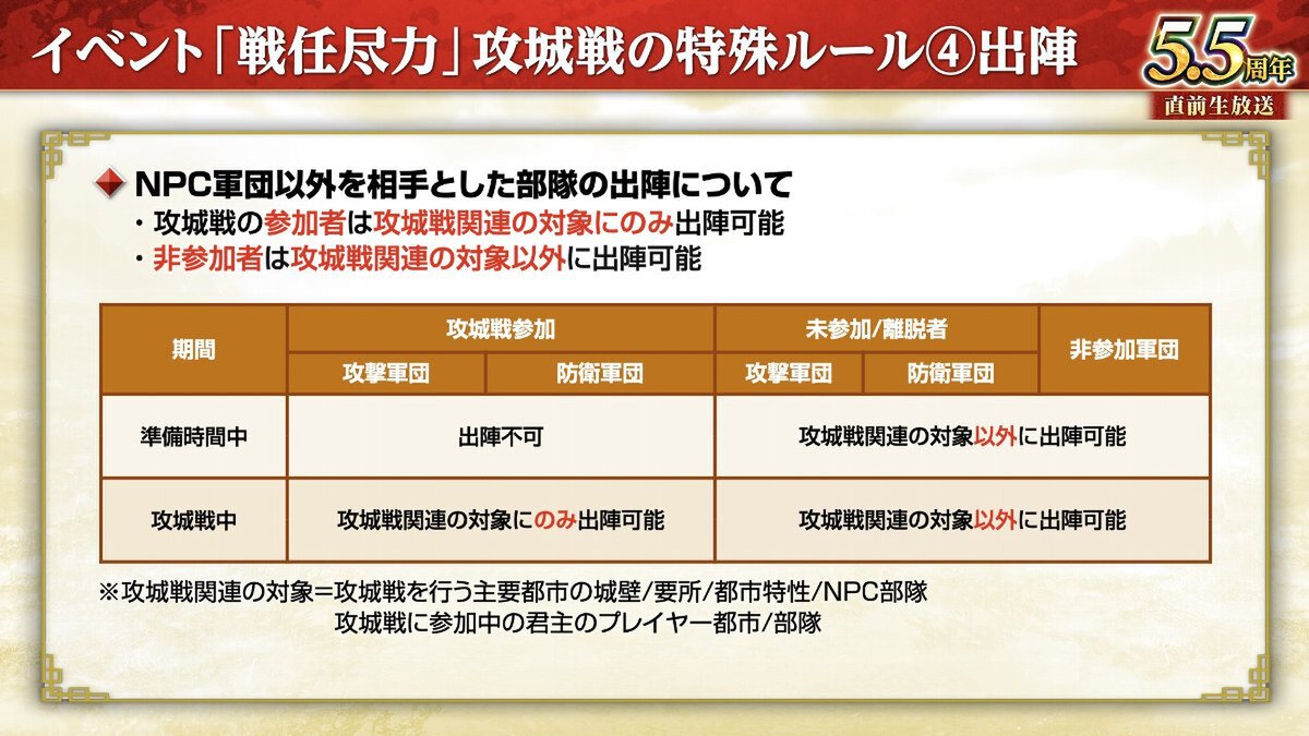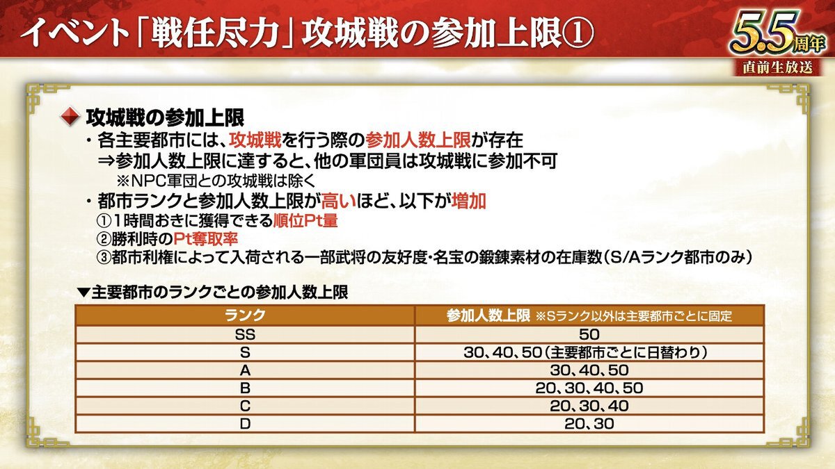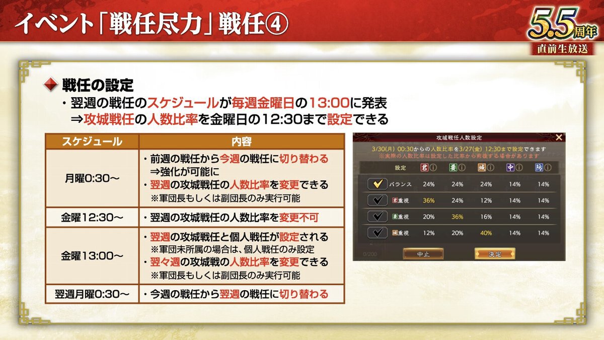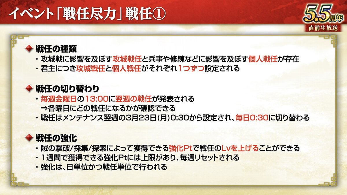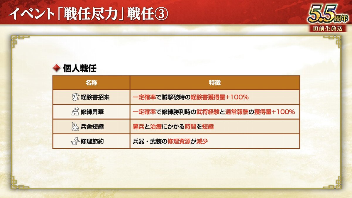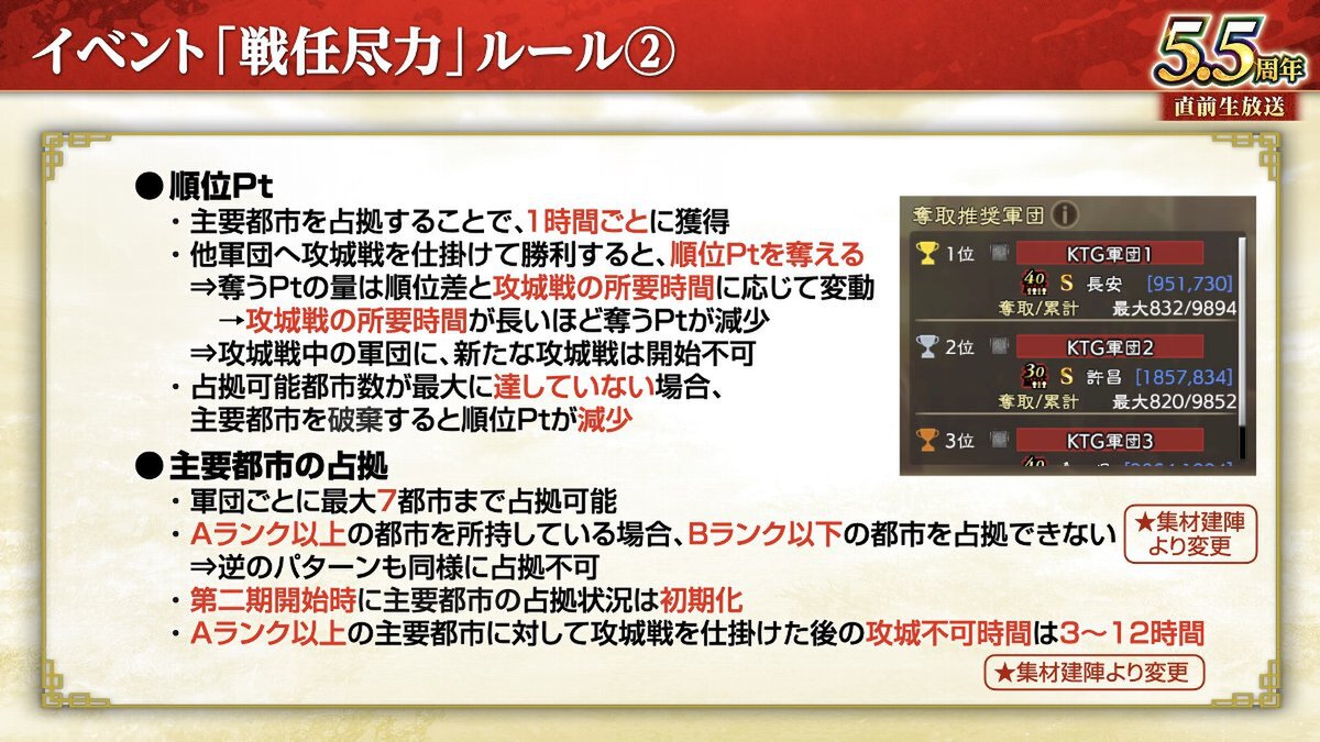 新有利変化「護厳」で駐屯/防衛中に素早い戦法発動を狙うことが可能で、兵科相性が有利な敵からの通常攻撃による被ダメージを大幅に軽減することができ、通常攻撃が強力な部隊に対して粘り強く戦うことができる「LR于禁」がシーズン武将として登場。