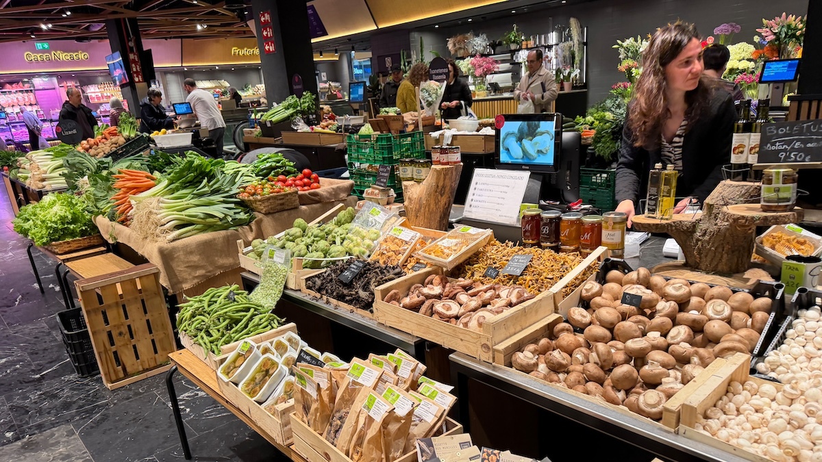 まずは市場の新鮮な野菜や果物、そして地下の巨大な魚市場を見学しながら、エリックさんの「バスク食文化の歴史」の解説がスタート。今回のツアーの魅力は、単に美味しいものを食べるだけでなく、その背景にある歴史を深く学べること。(地図:San Martin Merkatua)