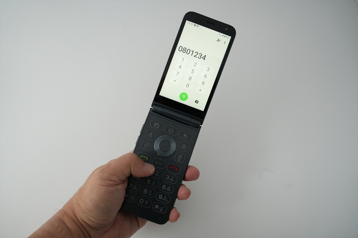 筆者は、このタイプのケータイに触れるのが久しぶりだったので、“ケータイってこんなに大きかったっけ?”と感じました。でも、横幅は約65.3mmに抑えられているので、片手でスムーズに操作できました。物理キーボードは出っ張りがなくフラットにデザインされていますが、しっかり押さないと反応せず、うっかり誤入力する心配はなさそうです。