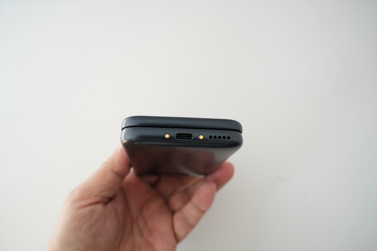 下部にはUSB Type-C端子とスピーカー。なお、USBケーブルは同梱されていません。別売の専用充電卓上ホルダーで充電することもできます。