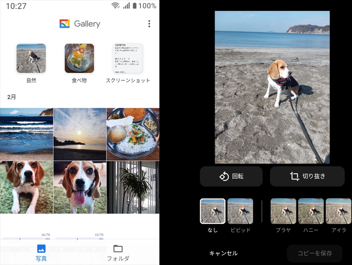 プリインストールされている写真管理アプリは「フォト」ではなく、整理機能や編集機能が少ない「ギャラリー」。「フォト」をインストールすることもできますが、Go Editionでは使える機能が限られるようです。