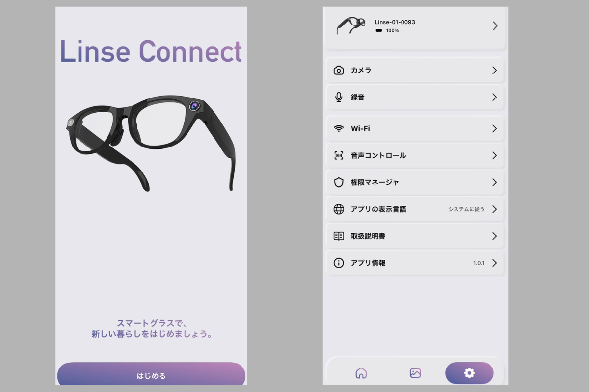 Linseを使い始めて、僕の世界の切り取り方は180度変わりました!最大の武器は、テンプル(つる)にある小型カメラ、マイク、およびスピーカー。専用アプリでスマホと繋げば、自分の視界そのままをワンタッチで「パシャリ」と記録できる、これがもう最高に気持ちいいんです!
