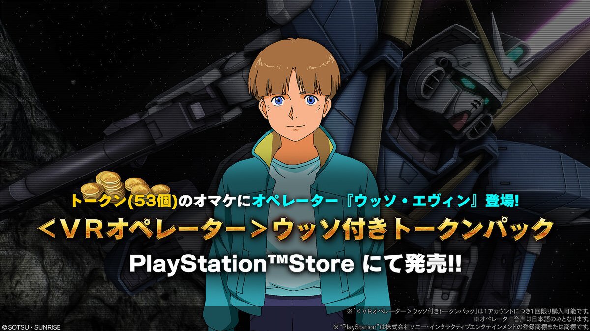 さらに、期間中PlayStation Storeにてトークン53個に<VRオペレーター>ウッソが付いてくる、<VRオペレーター>ウッソ付きトークンパックを同日より販売するので、「V2ガンダム」とあわせてぜひ購入を考えてみてはいかがだろうか。