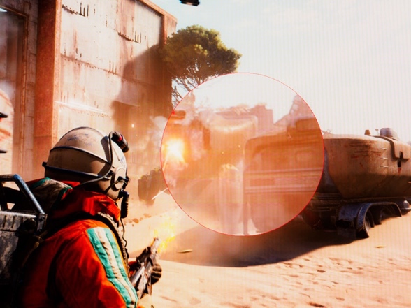 遠距離の敵への対応には「Eagle Eye」も心強い。この機能をオンにすると、画面上に赤い円形のオーバーレイが表示され、遠くにいる敵や注目すべきエリアを拡大表示してくれる。爆煙や砂埃で視界が遮られるような状況でも、遠距離のターゲット確認をしっかり補助する。