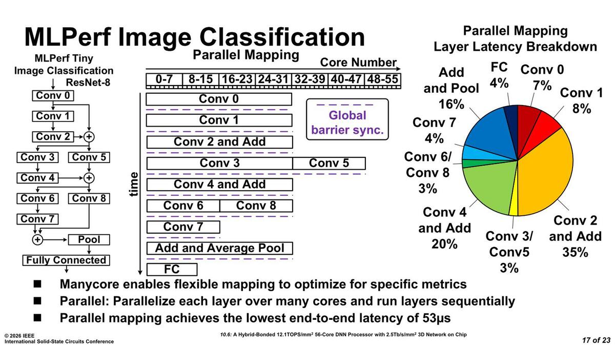 この図を見ると、そもそも56コアというやや中途半端なコア数は、ResNet-8でデータフロー的な処理をするのに最低56コア必要という判断で決まったのかもしれない。
