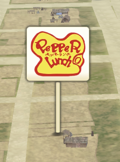 各地のペッパーランチ店舗にご当地スポットが配置されている。看板をタップして訪問すると、ペッパーランチコイン×100を獲得できる。