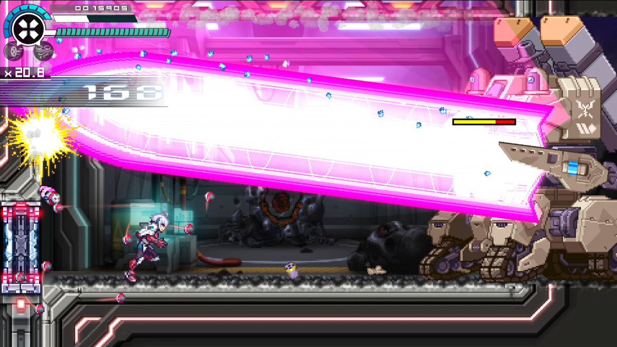 『白き鋼鉄のX(イクス) THE OUT OF GUNVOLT』では暴走システム「ダークネストリガー」の強化、『白き鋼鉄のX(イクス) 2』では新機能「トギスマッシュシステム」によりメインウェポンのブレイクホイールが大幅パワーアップなど、ほかにもさまざまなチューンナップが施されている。
