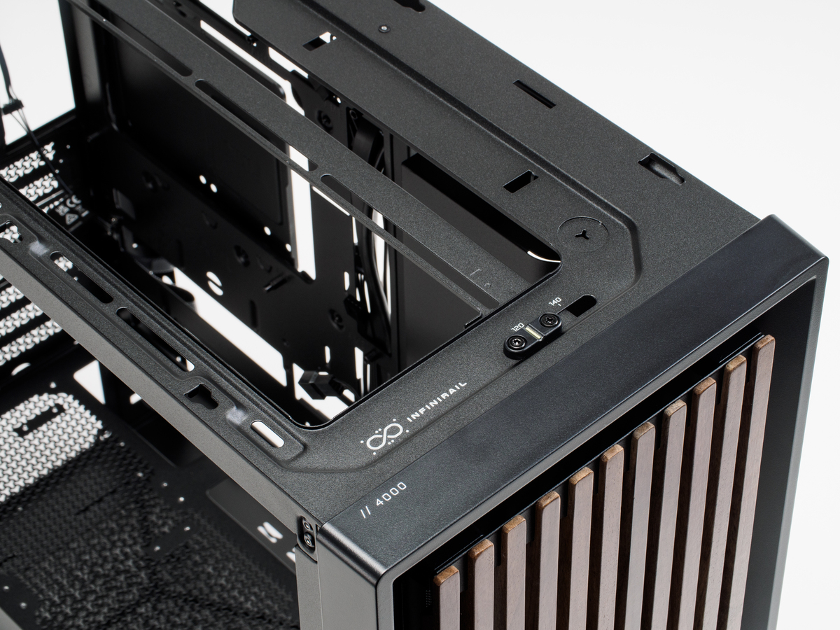 このInfiniRailは天面と前面の2か所で採用されており、ファンだけでなく、水冷クーラーのラジエーター固定でも役立つ。