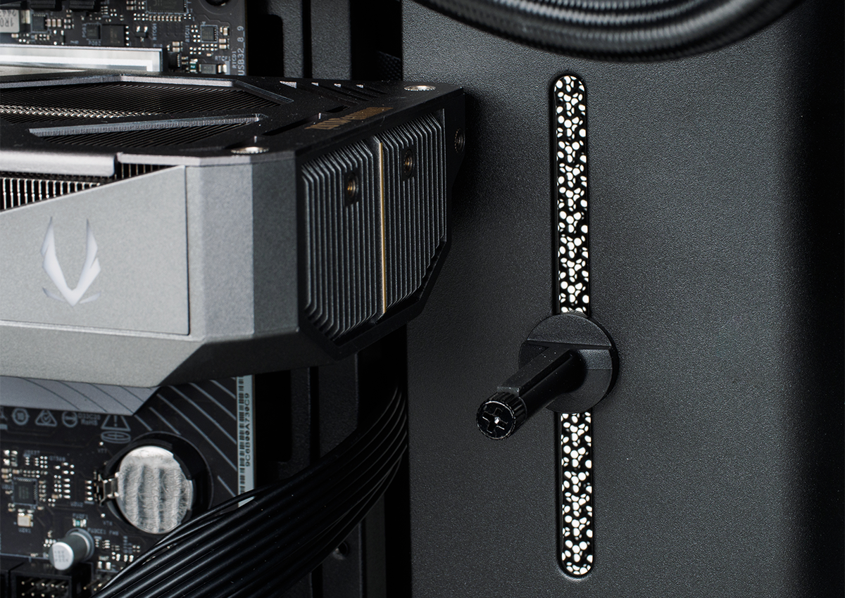 もう1つ、モジュール式の強みとなるのが、ビデオカードの装着向きを変更できること。通常の水平だけでなく垂直にすることもできるため、重たいビデオカードを基板だけで支えるのが厳しい場合や、ビデオカードを見える位置に移動して見た目に凝りたい、といったときに使うといいだろう。