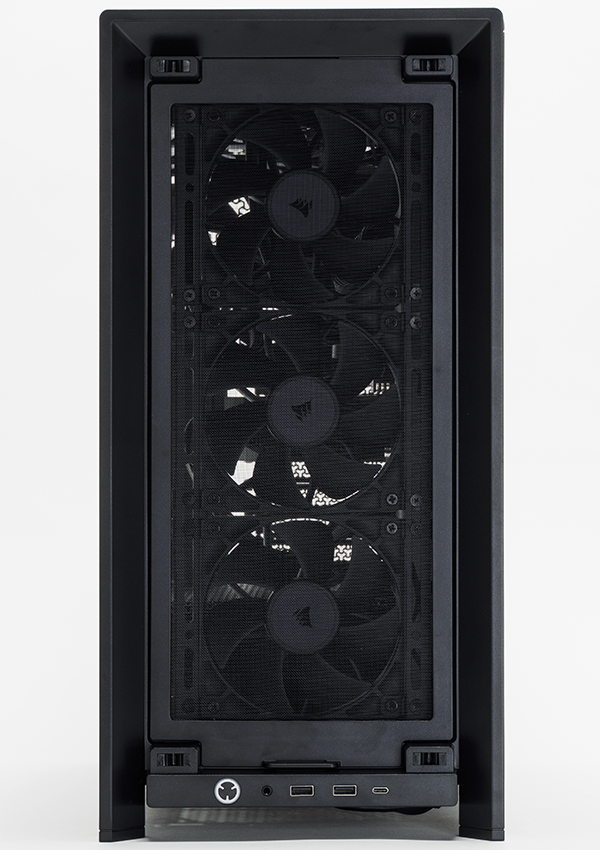 フロントパネルの内側に3つの吸気ファンがある事からもわかる通り、基本は前面吸気、背面吸気というエアフロー。しかし、底面も天面もメッシュとなっているため、ファンさえ増設すればいくらでもエアフローを強化できる。