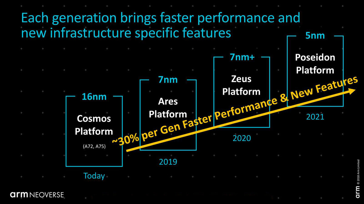 そこで2018年から、モバイル向けとサーバー向けで製品ラインを分割し、サーバー向けにはNeoverseというブランドを付けることを明らかにした。