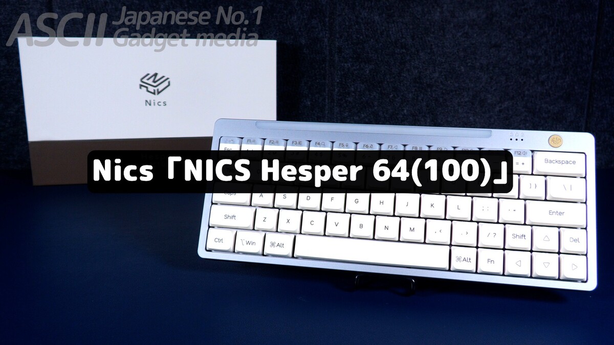 モデル名に「64(100)」とある通り、物理的には60%サイズの超コンパクト設計でありながら、デュアルアクション技術をフル活用することで「100キー相当」の操作性を実現。横幅は299mmで、専用ポーチまで用意されているポータビリティで100キーのキーボードを持ち歩けるのです。えらいこっちゃ。