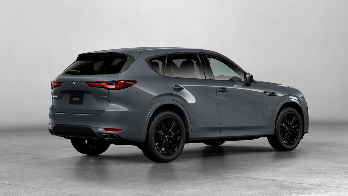 CX-60ではXD機種のエグゾーストガーニッシュをクロームメッキからブラックメタリックに変更し、ブラック基調の外装に統一感を持たせた。また、外装色では「ポリメタルグレーメタリック」を全機種に追加し、「ジルコンサンドメタリック」も全機種へ拡大する一方、「ソニックシルバーメタリック」は廃止している。